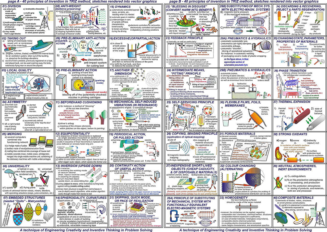 아는 사람들은 알지만 아직도 제법 생소한 트리즈기법은 러시아(구소련)의 과학자 알트슐러(G.S. Altshuller)가 1946년 소련의 우수한 특허와 기술혁신사례들을 분석해 찾아낸 창의적 발명원리들을 체계적으로 정리한 발명 관련 방법론으로 창의적 문제해결이라는 의미의 러시아어 머릿글자 (Teoriya Reshniya Izobretatelskikh Zadatch)를 조합한 말이다.
